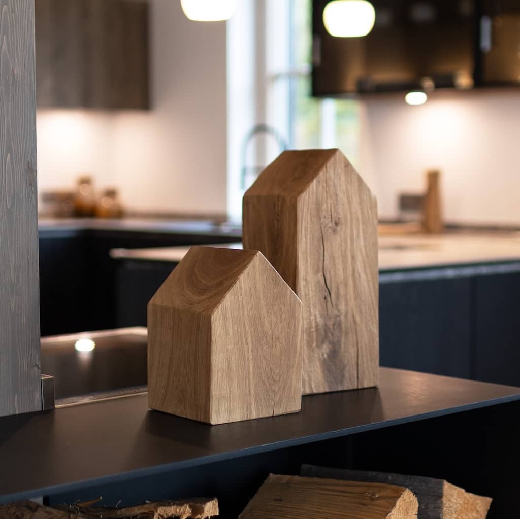 Diese Holzhäuschen werden aus massivem Eichenholz gefertigt und sind eine natürliche Holzdeko für dein Zuhause. Die schöne Maserung der Eiche und die rustikale Oberfläche geben jedem Haus einen eigenen Charakter. Als Wohndeko aus Holz passen die Häuser gut auf ein Regal, Sideboard oder eine Fensterbank und lassen sich das ganze Jahr über dekorieren.