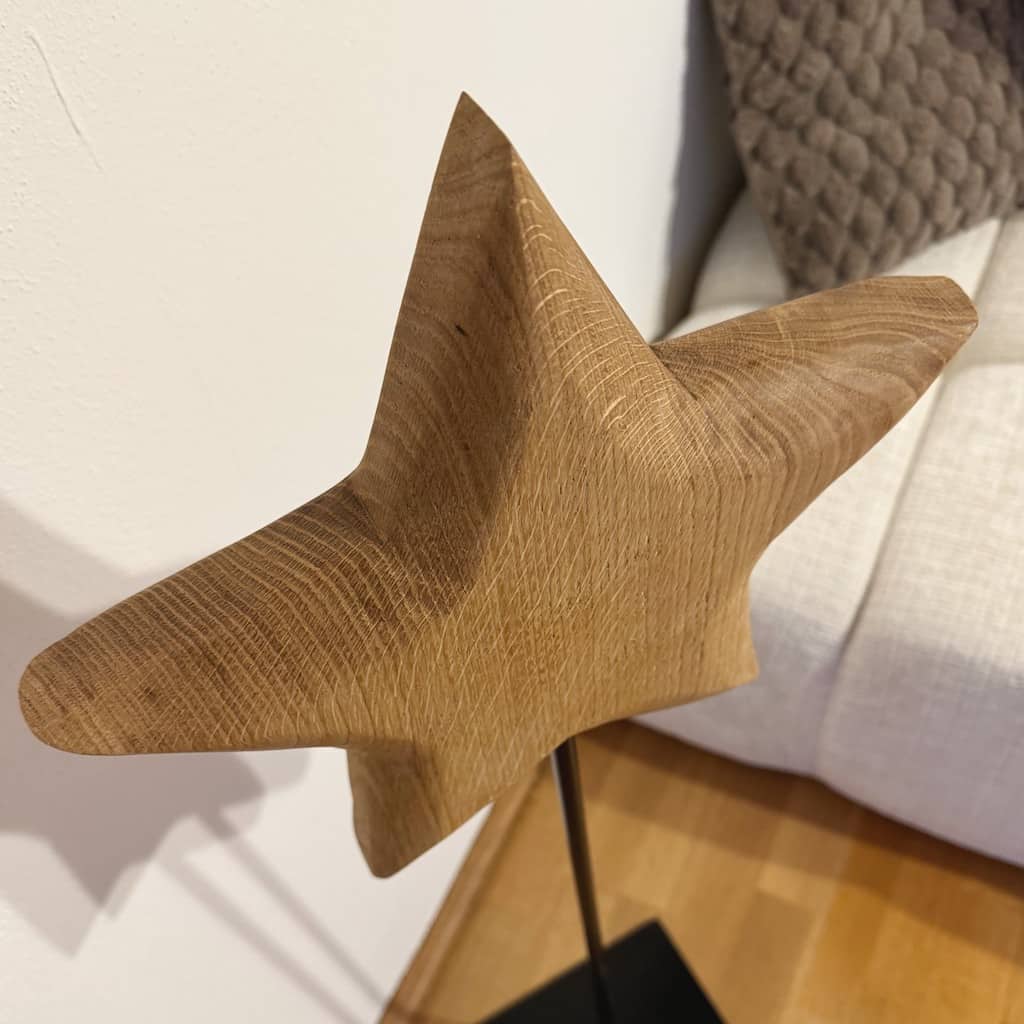Stern aus Eichenholz auf hohem Metallfuss, geölt